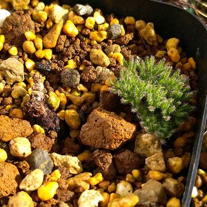 実生のペラルゴニウム・トリステさんもヤフオクでお迎え。 まだ地中にエナジーボールが数個有るだけ。 木化するまで何年かかるかな?