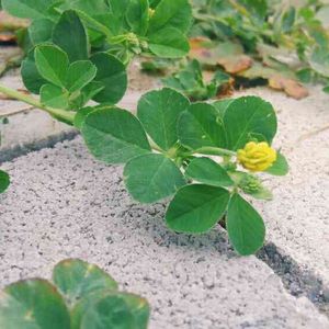 今日はちょっと寒いですね💦 近所の公園で、シロツメクサと一緒に生えてました。 這ってます。 葉っぱはシロツメクサに似てる気がするけど、花が黄色い…? 名前を知りたいです~🙇