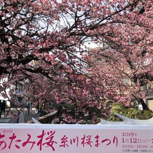 あたみ桜糸川桜まつり🌸 ② 川沿いに咲く早咲きの桜、綺麗でした。 熱海市 糸川遊歩道にて。