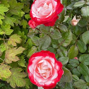 裏庭から 紅玉沢山咲いてます❤️ 昨年まですぐうどんこ病になってましたが株が大きくなったせいか今年うどんこ病になりませんでした🌹 🏷️金曜ローズショー