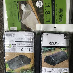 仕事中に寒冷紗みつけたけん買ったけど 取り付けられなきゃただのゴミ。。。 #観葉植物の日よけ #寒冷紗 #取り付けムズイ #諦めた