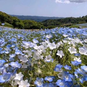 千葉県にあるマザー牧場へ🐄 ネモフィラ見頃でした💙🤍 5枚目、私の名前の由来のカピバラさん🥰珍しくお散歩していて歩き周り超可愛かった〜💕 2025.5.3 マザー牧場