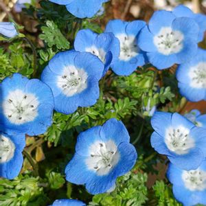 🍀🌻🪴💐🌹🌻🍀 🍀🩵ネモフィラ・メンジェシー🩵🍀 💐ネモフィラの花言葉は(可憐) (どこで も成功を) (あなたを許す) (愛国心) (荘厳)などです 💐ネモフィラはムラサキ科(またはハゼ リソウ科)ネモフィラ属の春に可愛い 小花が咲く耐寒性の一年草です 💐花のサイズは2~3㎝香りはほとんど なく、草丈は10~30㎝、開花時期は 3~5月頃です 💐代表的な青い花色のネモフィラはネ モフィラ・メンジェシーという品種 で、(インシグニスブルー)とも呼ばれ ています 💐ネモフィラの和名は・瑠璃唐草(るり からくさ)です、英名はBaby blue eyes (赤ちゃんの青い瞳)です。 🍀🌻🪴💐🌹🌻🍀