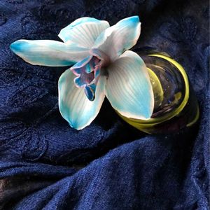 青い花💙 いただいて一週間経ちました。 朽ちていく前に昨日は記念撮影✨ 青い布、徳島の藍染の館で購入 日本の青って落ち着きます😊