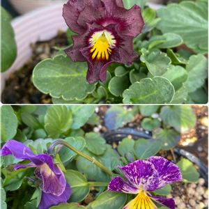 種まきっ子4,5 ⬆️フリル咲きに焼けの入ったビオラ 種はエスカノール ⬇️絣模様の珍しいビオラ 種はレパード