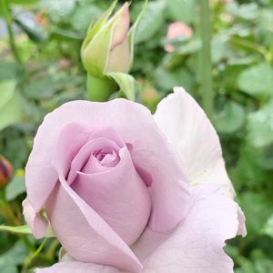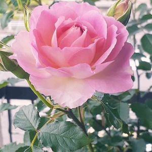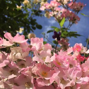 20年以上の古株 ラベンダードリーム 一重の小さなお花が可憐で可愛いの。 若い頃の私… 特に一重が好きだったみたい…🤣 道路側に誘引してあったけど 数年前にずいぶん手前にシュートが出て きてちょっと迷走中誘引💦 我家は道路から階段を上がっての庭なので 道路側から剪定出来ず 手前にはシマトネリコの木や他の植物やいっぱいでやりにくい😅 難しいなぁ〜💦 老後に向けて課題だなぁ😅
