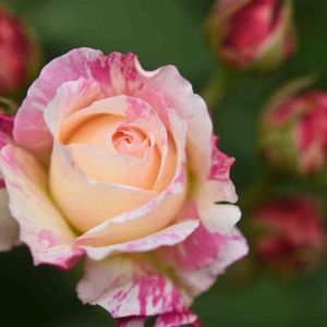 薔薇 クチュールローズ・チリア なんて可愛い〜お花が咲きました♡ クチュールローズ・チリア (河本バラ園) ひらひら花びらがファンタジックに踊ります! クチュールローズ・チリア (登録品種) 【花期】四季咲き 【樹高・幅・樹形】0.8~1.2m、半横張り木立ブッシュ 【花形】中大輪 【香り】中香 華奢なオートクチュールドレスをイメージして、ビーズ刺繍デザイナー田川啓二さんに贈られたバラです。シルクシフォンのような可憐な花びらを幾重にも重ね、ギャザーやフリルなど、贅沢なテクニックを盛り込んだシックなドレスのよう。鉢栽培もOKです。 ひらひらと踊っているようなフォルムは「これがバラ!?」と思ってしまうほど個性的。だからこそ、たくさんのバラの中にあっても存在感を出してくれます。エレガントなライラックピンクが上品です。 夏の花はピンチした方が秋によりよい花を楽しめます。 【こんな方におすすめ】 ・鉢で育てたい ・エレガントなバラを探している