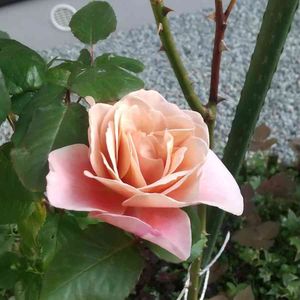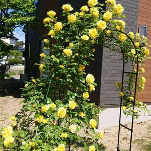 どちらでしょうか❓ エクセルサ🌹or🌹キングローズ トゲがあります。あちこちからシュートがビューンと出て、横にも上にも大きく育ってます。 ずっと名無しさんでしたが、GSの皆さんのpicで自分なりにこの2つに辿り着きました💕 プレゼント🎁で初めて名札なしバラ苗🌹を貰って嬉しくて、我が家の1番陽当たりの良い場所に植えたら、年々大きく育って😳 早く名前を付けてあげたいです🥰