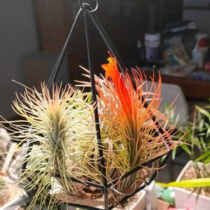 ダイソーさんからお迎えしたエアプランツに花が咲きました〜(*^^*) きれいなオレンジ色✨️