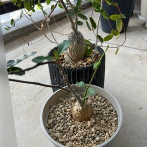 6月の植え替え 黄金サカキの木の下住みの子たち。 玄関パシャりんこ📷✨ ①フォッケア エデュリス 火星人 大して塊根じゃないよね。と思いつつ 掘り出してみたらでっかい🥔になっていた。この下にあと半分居る。元気な葉っぱが沢山でてきて 今後の成長を期待したい⋆✦ ② ディオスコレア・ エレファンティペス 亀甲竜 生産者さんの実生株。去年はちび豆だった🥔を土に植えこんで置いた。掘ったら…あんれまぁ 🥔がひび割れて いい感じの🐢さんになっているではないか。かわいい豆から バッキバキ男前に少しづつ。楽しみ🥰 ③オマケ。今年初の梅仕事。 まずは梅シロップ作り。夏の爽やかシュワシュワ梅サイダー🍹𓈒𓂂𓏸☀️ 楽しみ♡