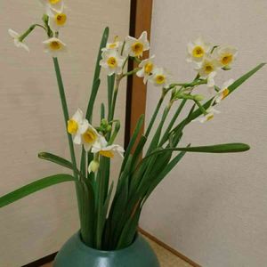 今日も氷点下❄️❄️ 5年ぶりの大雪警報だと😵 雪の中で倒れていたので救護しました🤗 お部屋で水に挿してあげたら元気になってよかったです😀良い香りしています。 日本水仙は花の真ん中の色が黄色📝