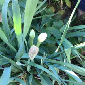日本水仙 蕾が開いてきました🎵 去年葉っぱばかりで 花芽が少ししかつかなかったので、 球根を掘り起こして埋め直したのですが、何十本も埋めたけど今のところ花芽が付いたのこれだけ😅 球根小さかったからだな~😣