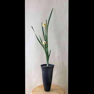 いけばな自主練 2021.1.25 その2 . 伝花 七種傳 日本水仙 三株生け . 残りの水仙で三株生けにもチャレンジ やっているうちに反省点が出てきて、、 難しい