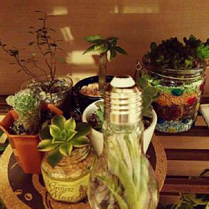 ミニ多肉植物の3点盛り〜🌵 不器用なのでこれが精一杯💦💦 今日は、植物と戯れて幸せ💕💕
