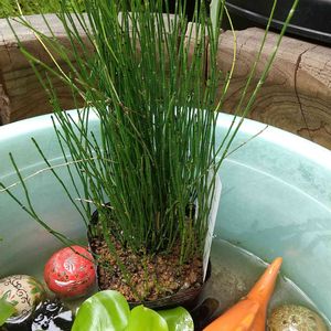 💚新入り💚 今日のお庭から🏡 ずっと気になっていた、トクサちゃま。 小さく育つ、姫砥草(トクサ)を選びました。 越冬した布袋葵(ホテイアオイ)と一緒に、涼しげです。