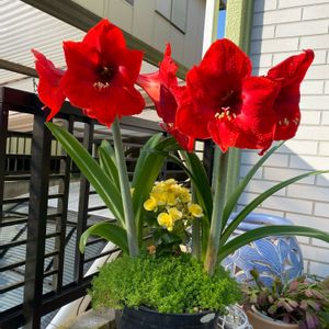 アマリリスが立派に咲いてます! 根元のセダムがモリモリ🤣去年もこうなってしまい一気に抜いたのに、今年もわずかに残ったものが凄いことに。
