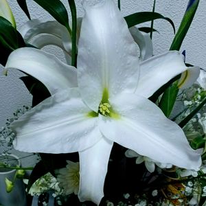 オリエンタルリリー 玄関の生花のオリエンタルリリーが咲きました。 花弁の汚れ防止のため、蕊は切除しています。