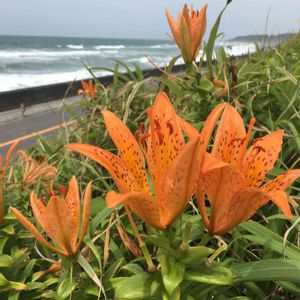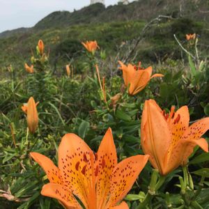 しまなみの花 コオニユリ 海岸の近くの草むらや松林などでよく見られます😆 昔は群生するくらい咲いていたそうですが最近はほとんど見ることができなくなりました😅赤い情熱的なユリ大好きです🍀😌🍀