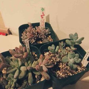 本日の二和園での狩り成果② これは自分用に、ってか自分用多過ぎィ(유Д유〣)💦(笑) ラウィ…500円 ブラックプリンス、熊童子錦…各300円 ざわわ交配3個…各200円 ハンメリー、コミックトム、ヒューミリス、maialea…各100円 でした〜❗️ ラウィ、小さいけど高い❗️ ブラックプリンス赤い❗️(笑) 熊童子錦は状態悪かったけど安いと思って❗️ ざわわ交配可愛い😍 でも交配したのじゃなくてざわわが欲しい❗️(笑) ハンメリーって調べてみたらスノージェイドじゃん❗️持ってるよ( ꈨຶ ˙̫̮ ꈨຶ )❗️ コミックトムもつぶつぶ可愛い❣️ そんでヒューミリスとmaialeaとかいうやつ❗️ やられた、お腐れ株☠️ ベンレートで切り口乾燥中❗️ 私はともかく、二和園のおっちゃんを騙くらかして売りつけたんだとしたら、業者絶対に許せん(ꐦ°᷄д°᷅)🗯 みなさん、今二和園に入ってるピンク札要注意です⚠️ 同じトレーの七宝樹溶けてて、あれ〜と思ったけど全部腐れ株の恐れありです🚨 そういうB級品なのかなぁ⤵️ とにかくこれからはどこで買うにしても株がぐらつかないかチェックだな(๑–̀ω–́๑) 勉強になりましたわ😭 あと品名をググることね❗️(笑)