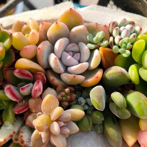 入荷したて🌱😊ina hanaさんの♡ せっせとカゴに詰め😄連れ帰る🚙 一番手前の子パレットに1つしか入ってなかった🌱 …帰ってから気づく…📛がありませんでした💦 🙏🏻お名前教えてくださいませ🙏🏻 ジョイスドロープには、スプリングワンダーが同居💕 嬉しいコラボ🪴 〜追記 玉葉🪴名前教えていただきました❣️ *sunny*さん ありがとうございます😌