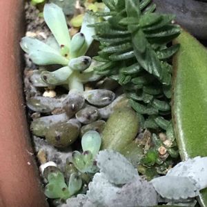 セダムのコスミック? セデベリアのコミックトム? よくわからないけど、 かわいいのでどちらでもいいかな 去年の夏に全滅させたので、 少しでも増やしたくて・・・ 奥:親株 左:先っちょだけカットして挿したコ 右:葉挿しベビー 棒だけ部 だった親株もベビちゃんいっぱい