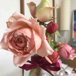 お昼過ぎから強風が吹き始めたので、花びらが傷む前にカットして、部屋の中へお迎えしました🥰 アンブリッジローズとエリナ💐