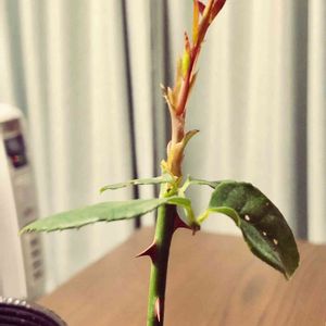 こんばんは🌇 次女がインフルAに感染しちゃって看病に加え、引っ越し準備やらリフォーム打ち合わせやら、銀行手続きやらで、すっかりドタバタしてました💦 その間、部屋で花瓶に活けていたエリナ。 (一緒に活けていたアンブリッジローズは早々に散りました〜💨) 外でも中でも、やっぱり殿堂入り!花持ちのいいエリナ❣️ その花瓶を、さっき夕飯食べながら、何気にジィ〜っと見てたら、あれ⁉️水に浸かってる部分の芽🌱が伸びてきてる⁉️ 水につけとく挿し木のお話を聞かせてもらったけど、こんな感じ?😁😅違う⁉️