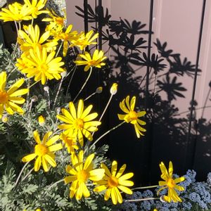 ユリオプスデージーがたくさん咲いています🌼🌼 後ろに映った影も可愛い💕 今日は、お雛様を出しました🎎 結婚して6年目にやっと出来た娘。実家の父と母の思いがいっぱい詰まったお雛様🎎 でもね、昔ながらの七段かざり。 一人で出したの初めて😅あ〜疲れた💦