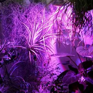 台風で避難中のエアープランツ LEDライトで怪しい色に トイレの癒し空間 家族からは不評です…
