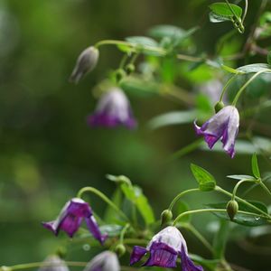 開花し始めました。花径が2-3cmの極小の花を咲かせる品種です。花弁表(内側)が綺麗な紫で、裏が白に近い淡い紫をしています。下を向いて開花します。この株は今年で7シーズン目の8年生株です。蕾が節々に付いているので、これから沢山の花を咲かせてくれると思います。