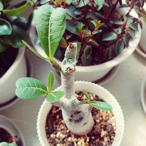 梅雨の中休み?晴れて気持ち良い午後です☀ アデニウム🌱冬のあいだに葉っぱが落ちてそれから全然何の気配もなく…これは枯らしてしまった😭とあきらめていたのですが GSのなかで枝の先をカットしていた方の投稿を見て私も真似してみました! そしたら無事復活😂 その投稿に出会えたおかげです💛感謝🙏感謝です🙏