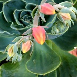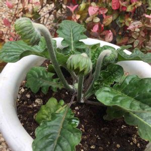 でっかい七福神くんからニョキニョキと…何( •᷄ὤ•᷅)⁉︎と思ってたけど、色づいてきてわかりました、お花かぁ〜(∗ˊ꒵ˋ∗)🌸 トロピカルな感じで可愛い❤︎ 君は畑で干からび寸前だった子だから、うちに来て良かったねぇ。