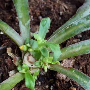 レウィシア、部屋の中にいたら日光不足だったのかかなり徒長してしまったので、思いきってチョキン。 そして復活!! \(^o^)/ 花芽が出てきました~ 嬉しいな♡