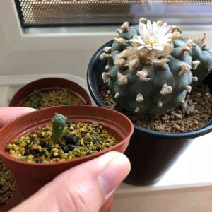 うちで採れた種から育ててる烏羽玉ちゃん。一年でこんなもんか。かわいい。