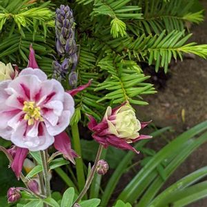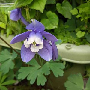 こぼれ種で増えたおだまきさんです。 これは、背丈が低めの安定した株にそだちます。 親戚からの頂き物で、大切に育てています。