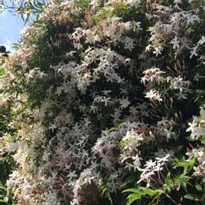 庭の大株ハゴロモジャスミンが花盛りです。ちょっと匂いがきついくらい。