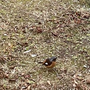 今日はカーテン開けたら庭にジョウビタキ 初雪カズラや苔をひっくり返してエサ探し 人を恐れずまあまあ近くまでくる