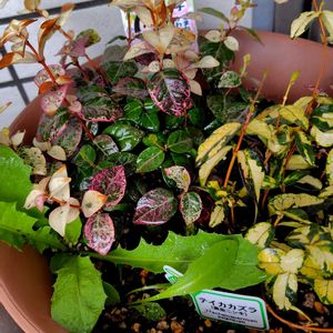 半日陰の玄関脇にはなかなかお花が置けないのですが、ウインティーを試してみます。 ウインティー ローズ/ピーチ ハツユキカズラ オレガノ ブルガリ ワイヤープランツ