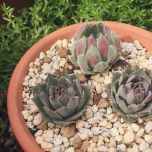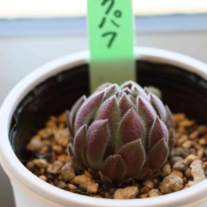 今日我が家の仲間入りになった センペルビウム ピンクパフ 枝の先に子株をつけてる姿に一目惚れ💕