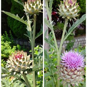 アンティーク チョークの お花が咲きました💜 まるでアザミ💜 和名 チョウセンアザミ なるほど🤔 孫姫二人(代休)を迎えに行ってちょっと寄り道 雨☔ですが 綺麗に咲いていました ←6/10 →6/14
