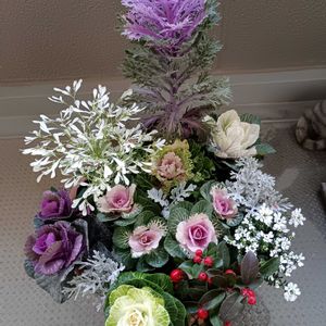 こんばんわ〜🌠 今日も一日お疲れ様でした〜( ´ ˘ `)_ _) 今日も良い天気でしたね〜 明日から寒くなりそうなのでハボタン買いに国華園へ〜٩(๑^ᴗ^๑)۶•*¨*•.¸¸♬︎ 早速寄せ植え作りました 兎に角気に入ったハボタン選んで、白いお花と気になってたユーフォルビアとやっぱり赤い実のビッグベリー🌿🌼🤍❤️ Xmas用とお正月用に〜 二刀流で🤭🤗🎄🎅🎍⛩️ 🔖とにかくGS楽しもう! やっぱり年末行事準備は葉牡丹の寄せ植えからですね〜 ٩(๑>◡<๑)۶。.:*ฺ✤ฺ🌿 12月も宜しくお願いしますm(_ _)m •*¨*•.¸¸♬︎•*¨*•.¸¸♬︎•*¨*•.¸¸♬︎
