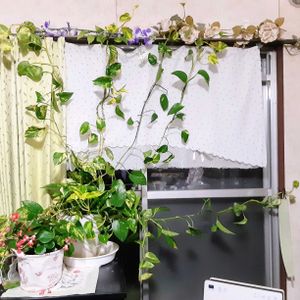 毎日暑くて参りますね。 お隣さんからポトスをいただきました。 大きくなって置くところがないそうで窓に這わせました。