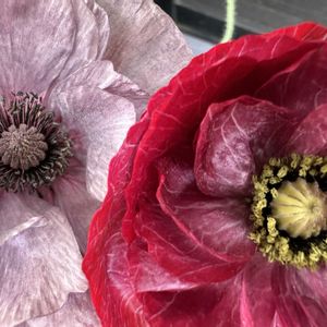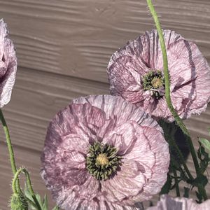 ポピー咲きました💐 アメイジンググレイとパンドラです✨ 苗から育てるなかで、心配なことが沢山あったので綺麗に咲いてくれて嬉しい🥰 せっかく咲いてくれてるのに風が強い毎日でごめんねー🌪️