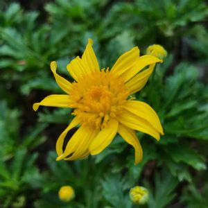 おはようございます😃 ユリオプスデージー・・・ではなく 2年生になったばかりの マーガレットコスモスです💛 (元・見切り品) 夏の間は休んでましたが 涼しくなって活動を再開しました😊