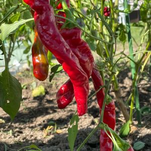 フルーツパプリカの初収穫 緑から鮮やかな赤に変身❤️ 果肉は生の方が甘味があってサラダにもいいね🥗 甘長唐辛子は毎日のように採れるけれど、後半はクニャクニャの形が増えてくる^^;