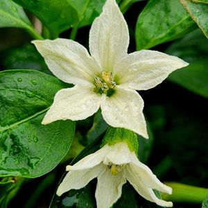 今日のお花 トウガラシ 甘長トウガラシのお花です。 ①うっすら黄色 ②今ごろになってたくさん花が咲き始めました。 トウガラシの原産国は中南米(メキシコ、ペルー) 熱帯では多年の小低木に分類されている。 日本の冬は寒すぎるので温室か室内に取り込むと冬を越せるようです。 深夜の突然の⛈️、近くで落雷したのではないかと思うほどの音でした。 和歌山県に昼過ぎ線状降水帯の予報。 久しぶりに寒いと感じた朝🌧️