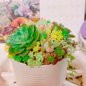 フルーツ缶を簡単にリメイクしてw 白く塗っただけ🤣💦 葉挿しから育てた多肉を寄せ植えしてみました 初めてちゃんとした寄せ植え💦 上手くできたか自分ではわからないww でも、丸くできて満足してます😆👍 皆さんみたいな豪華な寄せ植えには程遠いけど😅 頑張りました💕 葉挿しどんどん増やしてまた寄せ植え作ろう♪🥰