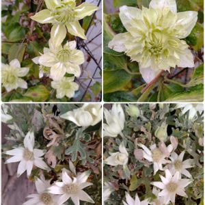 1️⃣2️⃣クレマチス(品種不明) 今季も写真に収めきれないほど 広範囲に沢山咲きました 3️⃣4️⃣マダム ル クルトル(別名マリーボワスロ) まだ若苗、今季は2輪だけ咲きました 忙しくしています 庭の記録の為に自分の投稿だけしています