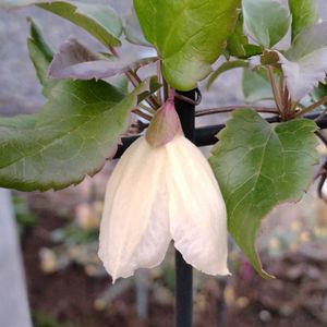 今日、クレマチス アンスンエンシス(冬咲きクレマチス)の鉢増しをしました 今度はこのDAISOのトレリスに絡ませて咲かせたいなぁ😊 (4/30追記 DAISOトレリスだと足りなそうなので、120㎝オベリスクに変更した) (5/14追記 梅雨入り前の最終カットをした) 初めての夏越しに備えて、カットした枝は挿し木にして保険株を作ろうと思います(写真㊨) 発根がわかるようにペットボトルでやってみました! リキダス風呂に入ってます🛀 他のお花が少ない、1月に咲いてくれる貴重なお花です 可愛いベル型のお花がまた見れますように🔔