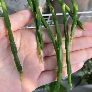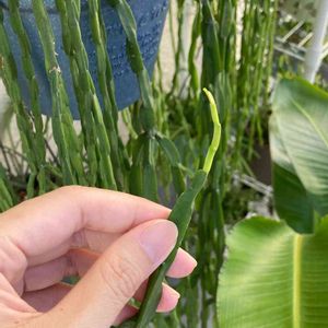 ⑤ Rhipsalis paradoxa リプサリス パラドクサ 【学 名】Erythrorhipsalis 【科属名】サボテン科リプサリス属 【分 類】着生サボテン 【耐寒性】中 7℃以上 【耐暑性】中 【日 照】明るい半日陰向き 私の森にはなくてはならない存在 私のハンギング1番のお気に入り♡ 四方角に伸びる姿がまた優美 朝起きると1番に見える🦜 たまらない極上の癒しのフォルム 伸びすぎて全部カメラに収まらなかった
